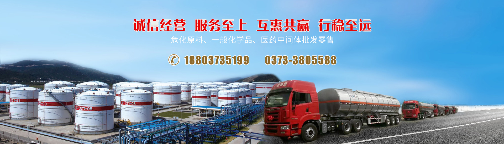 注冊資金1000萬,以液體危化產品為主, 固體危化產品為輔,經營有50余種危化產品一般化工原料、醫藥中間體、塑膠建材等。